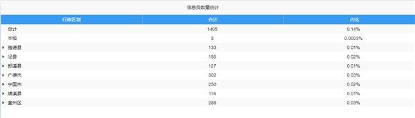 全市灾害信息员数量(截至2022年11月4日)
