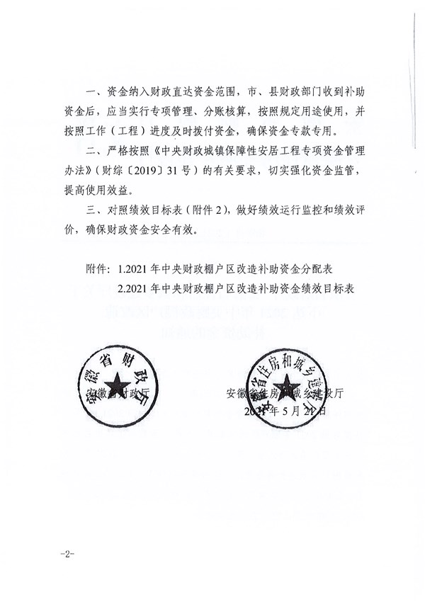 | 名称: | 安徽省财政厅 安徽省住房和城乡建设厅关于下达2021年中央财政棚户区改造补助资金的通知 |